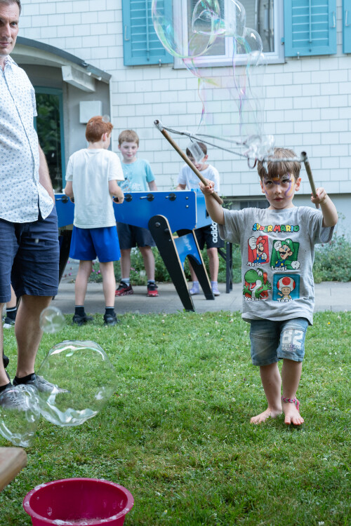 Die Hüpfburg und unsere Schminkfee waren auch dieses Jahr für die Kinder das Highlight des Abends. Am Tschuttikasten haben sich grössere Kinder und auch Erwachsene ausgelassen. Die Schokoküsse für die Schleuder waren innert weniger Zeit verschossen. Beim Kinderecken konnten sich die Kinder, welche dem Trubel entkommen wollten, malen oder Seifenblasen machen. Ausserdem standen die heiss begehrten Crêpes auf dem Menüplan und das gleich neben dem Spielbereich der Kinder.