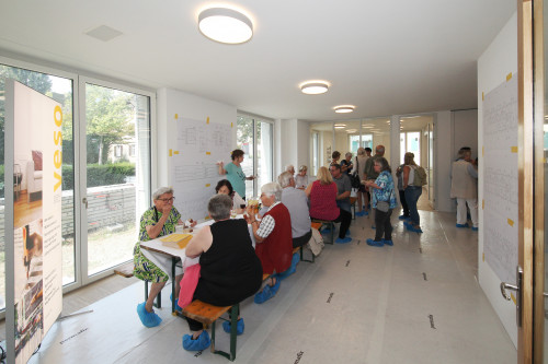 Nebst den 2.5 und 3.5 Zimmer-Wohnungen konnte auch die «Grosswohnung», welche in den nächsten Jahren von älteren Menschen mit psychischer Beeinträchtigung bewohnt wird und ebenfalls Tagesstrukturangebote bietet sowie auch das neue Büro der Wohnbaugenossenschaft Talgut besichtigt werden. Neben diversen Rundgängen durch das Gebäude blieb genug Zeit, das Haus auf eigene Faust zu erkunden und sich bei einem Imbiss zu unterhalten. Die VESO als auch das Büro sind bereits seit September im neuen Gebäude, die restlichen Wohnungen werden im Oktober 2018 bezugsbereit sein – es sind alle Wohnungen vermietet.