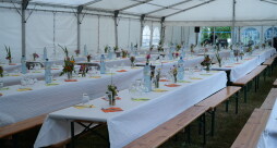 Dank unserem Helferaufruf konnten wir noch 14 Mieterinnen und Mieter akquirieren, die uns tatkräftig beim Aufbau und Tische decken, sowie auch während des Festes unterstützten.