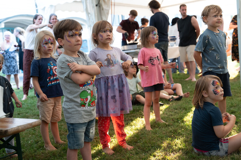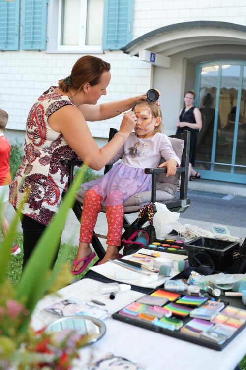 Die Hüpfburg und unsere Schminkfee waren auch dieses Jahr für die Kinder das Highlight des Abends. Am Tschuttikasten haben sich grössere Kinder und auch Erwachsene ausgelassen. Die Schokoküsse für die Schleuder waren innert weniger Zeit verschossen. Beim Kinderecken konnten sich die Kinder, welche dem Trubel entkommen wollten, malen oder Seifenblasen machen. Ausserdem standen die heiss begehrten Crêpes auf dem Menüplan und das gleich neben dem Spielbereich der Kinder.